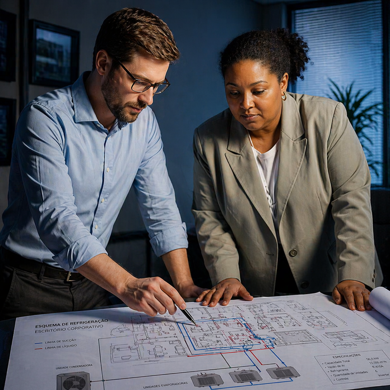 Cada sistema é definido conforme as características do ambiente e a necessidade térmica, garantindo equilíbrio, melhor distribuição do ar e desempenho adequado ao uso.